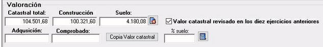 En la ficha de inmuebles se añade una nueva casilla que permite anotar el valor de la construcción y obtener el valor del suelo por la diferencia de ese importe con respecto al valor catastral.