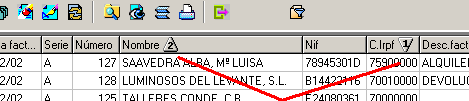 En la imagen anterior se muestra un ejemplo de una base de datos en la que se ha ordenado la información de un fichero de facturas primeramente por el código de ingreso/gasto y luego por orden de razón social del cliente/proveedor.