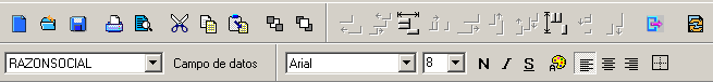 Con estos botones los elementos del informe pueden ser cortados, copiados o volcados desde el portapapeles del diseñador de listados e informes.