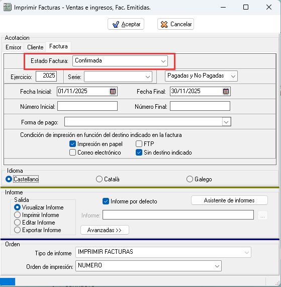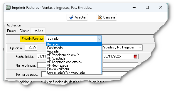 Cambios en los Informes y la impresión. Acotación por el Estado de las facturas |