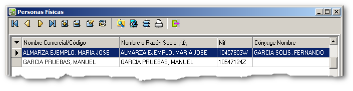 Lo primero que se muestra al entrar en esta opción es la lista de personas físicas para poder elegir el declarante con el que se va a trabajar. Para seleccionar un contribuyente se puede hacer doble click con el ratón sobre el nombre del declarante o pulsando la tecla