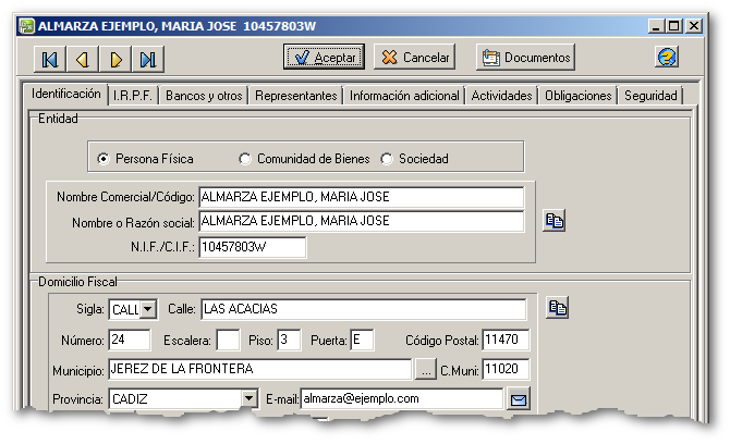 Antes de calcular una declaración es necesario crear una ficha con los datos personales del declarante y otros miembros de su unidad familiar. Este proceso se realiza en el menú "Ficheros", "Personas físicas".