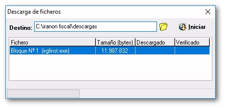 La descarga del programa y otros componentes que requiere la aplicación se realiza a través de Internet utilizando para ello un programa llamado GESTOR DE DESCARGAS Iranon.