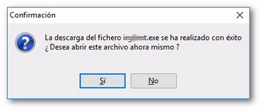 Cuando finaliza la descarga de cada programa o paquete, el sistema de descargas muestra un aviso como el siguiente para preguntar si se quiere iniciar en ese momento el proceso de instalación.